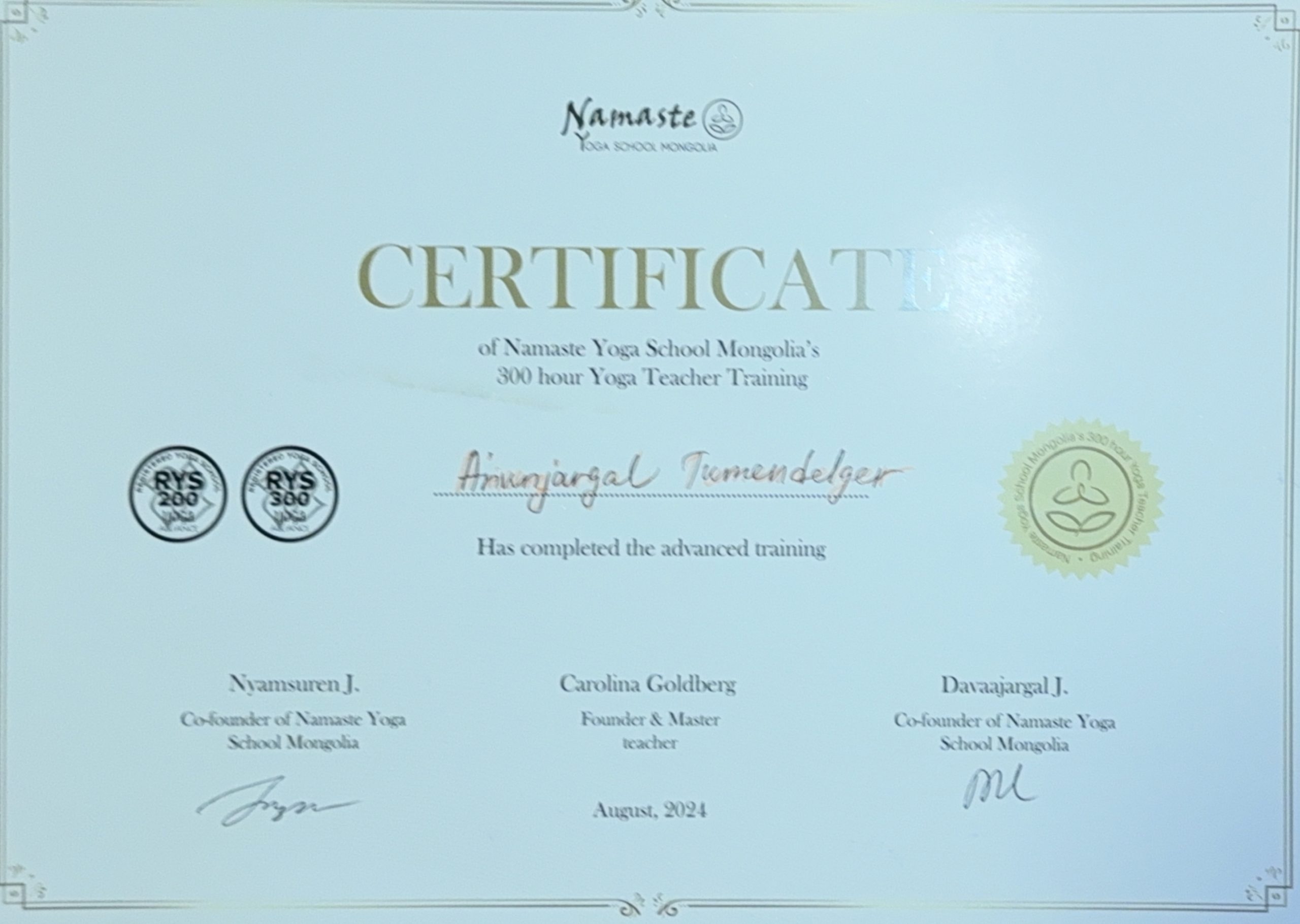 • Багшийн зэрэг: RYT200+RYT300