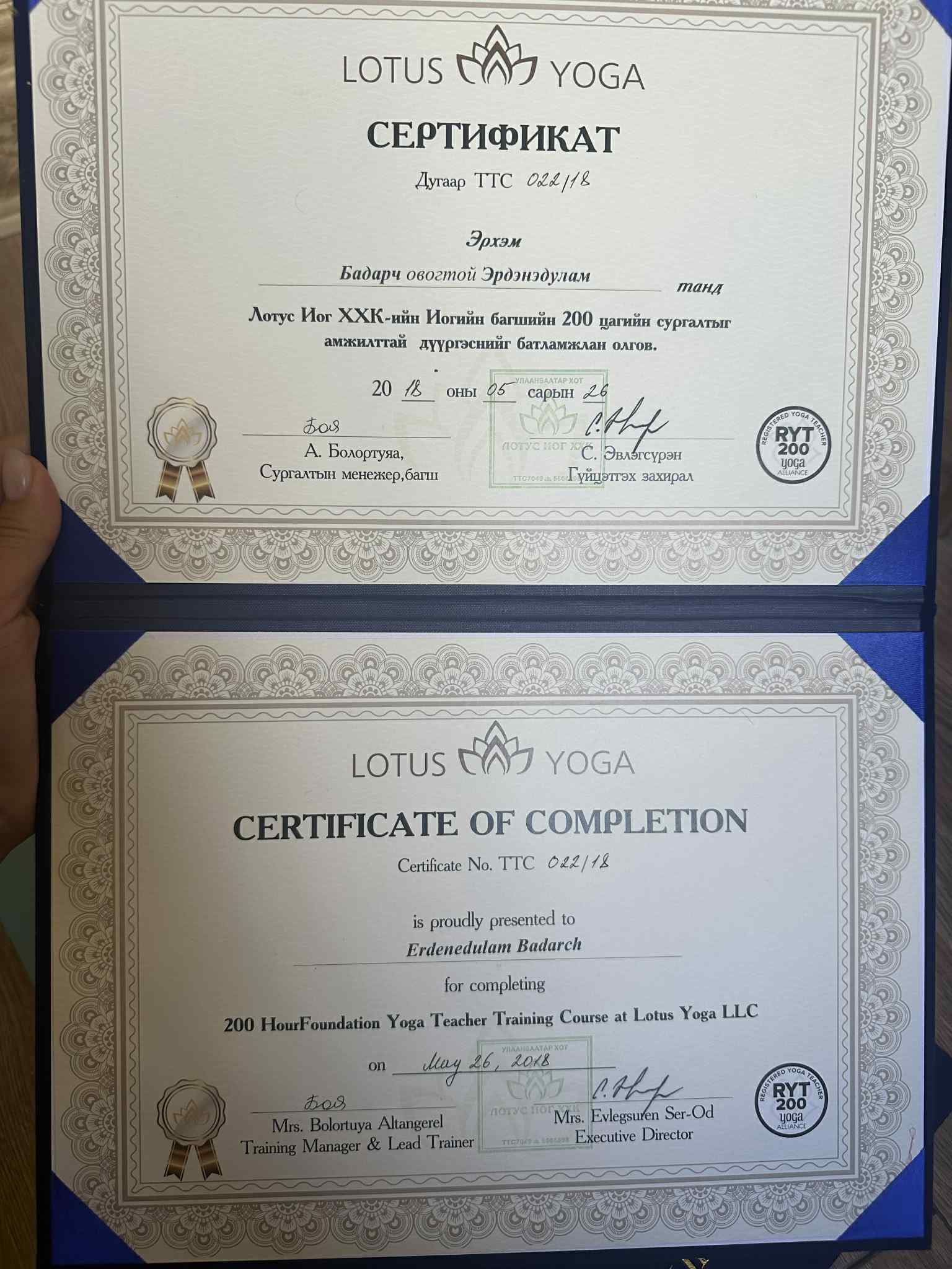 • Багшийн зэрэг: RYT 200